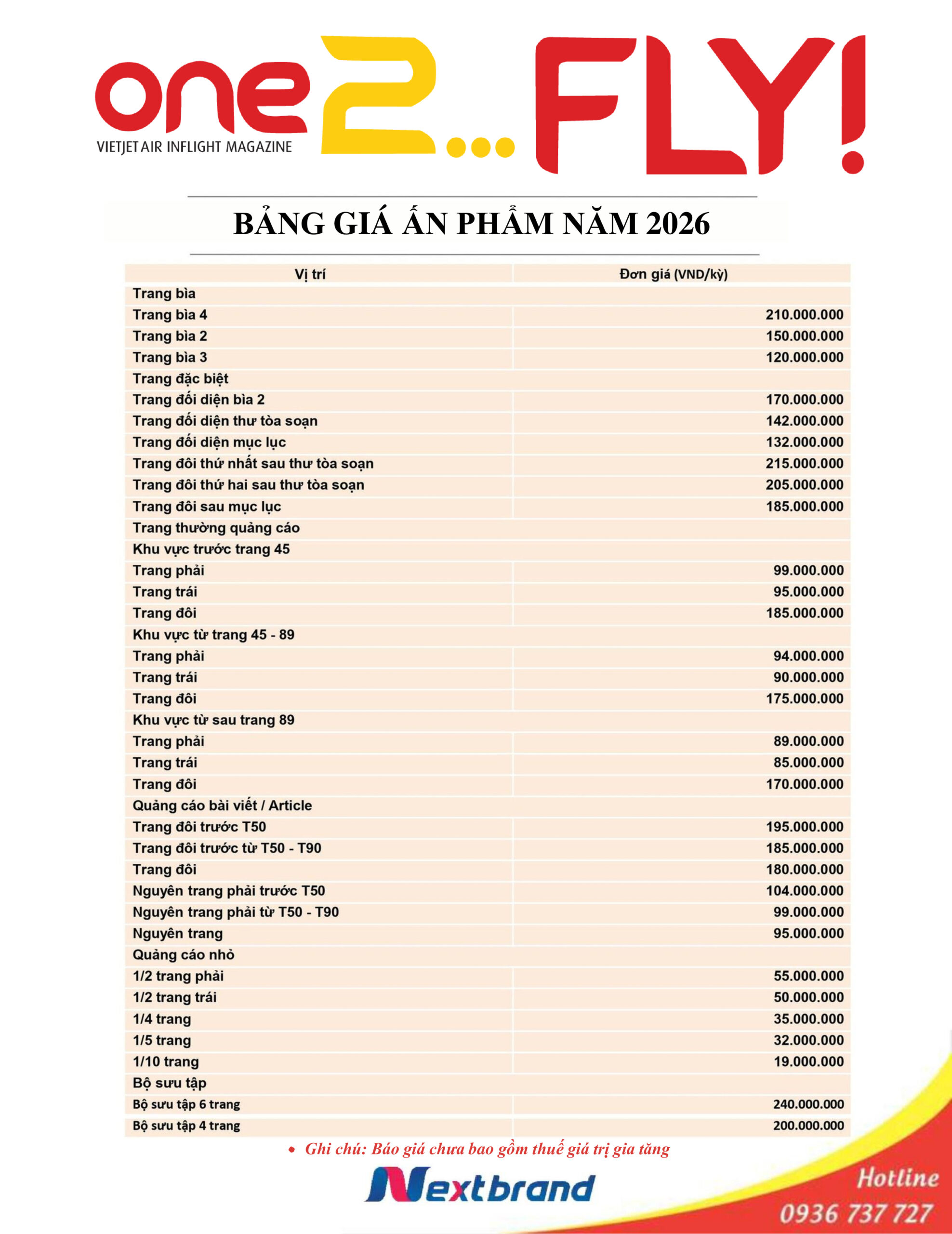Tạp chí One2Fly được phát hành đều đặn vào các tháng chẵn trong năm (02 tháng 1 kỳ phát hành, 6 kỳ / năm)
